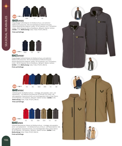 KA423 AP592817Doppellagige Softshell-Weste mit Rei%u00dfverschluss und seitlichen Rei%u00dfverschlusstaschen. Mit kontrastfarbenen Rei%u00dfverschl%u00fcssen. Wasserabweisendes Material. Au%u00dfen: 95 % Polyester und 5 % Elasthan. Innen: 100 % Polyester-Micro-Polarfleece. 300g/m%u00b2. Marke: Kariban.Gr%u00f6%u00dfe:S-XXL Bedruckung:S2(6), TC(8), DTC(FC), BR(10)Preis auf AnfrageKA424 AP59255Doppellagige Softshelljacke mit Rei%u00dfverschluss und seitlichen Rei%u00dfverschlusstaschen. Mit kontrastfarbenen Rei%u00dfverschl%u00fcssen. Wasserabweisendes Material. Au%u00dfen: 95 % Polyester und 5 % Elasthan. Innen: 100 % Polyester-Micro-Polarfleece. 300g/m%u00b2. Marke: Kariban.Gr%u00f6%u00dfe:S-XXL Bedruckung:S2(6), TC(8), DTC(FC), BR(10)Preis auf AnfrageKA401 AP59042Softshell-Jacke mit Rei%u00dfverschluss %u2013 dreilagig, atmungsaktiv, wind- und wasserdicht %u2013 mit Rei%u00dfverschlusstaschen an %u00c4rmeln und Seiten. Mit atmungsaktiver Zwischenschicht und innenliegendem Micro-Polar-Fleece. 95 % Polyester, 5 % Elasthan, 300g/m%u00b2. Marke: Kariban. Gr%u00f6%u00dfe:S-XXLBedruckung:S2(6), TC(8), DTC(FC), BR(10)Preis auf AnfrageKA403 AP5035Softshell-Bodywarmer-Weste mit Rei%u00dfverschluss %u2013 dreilagig, atmungsaktiv, wind- und wasserdicht %u2013 mit Rei%u00dfverschluss an Brust- und Seitentaschen. Mit atmungsaktiver Zwischenschicht und innenliegendem Micro-Polar-Fleece. 95 % Polyester, 5 % Elasthan, 300g/m%u00b2. Marke: Kariban. Gr%u00f6%u00dfe:S-XXLBedruckung:S2(6), TC(8), DTC(FC), BR(10)Preis auf Anfrage-06A-06A-05-05-06-06A-09V-10-80-06-06A-09V-10-80-10-10-80-80186SEASONAL WEARABLES