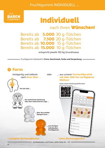 L%u00f6weFruchtgummi INDIVIDUELL ... Individuell nach Ihren W%u00fcnschen!Bereits ab 5.000 30 g-T%u00fctchenBereits ab 7.500 20 g-T%u00fctchenBereits ab 10.000 15 g-T%u00fctchenBereits ab 15.000 10 g-T%u00fctchen entspricht jeweils 150 kg GrundmasseFruchtgummi individuell in Form, Geschmack, Farbe und Verpackungeinzigartig und exklusiv nach Ihrer Idee1 ...1 FormoderVon der Idee ...... der technischen Zeichnung oder dem vektorisierten Logo ...... %u00fcber die erstellteStempel-Form ...... zum fertigenindividuellenFruchtgummi.1 zuz%u00fcglich Werkzeugkosten 2 ohne Werkzeugkosten Artikeldetails und Preise, siehe Seite 24 %u2013 27... aus unserer Formen%u00fcbersicht mit %u00fcber 200 frei verf%u00fcgbaren Motiven2www.suesse-werbung.de/formen/Fahrzeuge Tiere Hobby/BerufFormen/Zeichen Mensch FeiertageEssen/Trinken Sonstiges Alle FormenDu hast die Wahl:Suchbegriff eingeben22